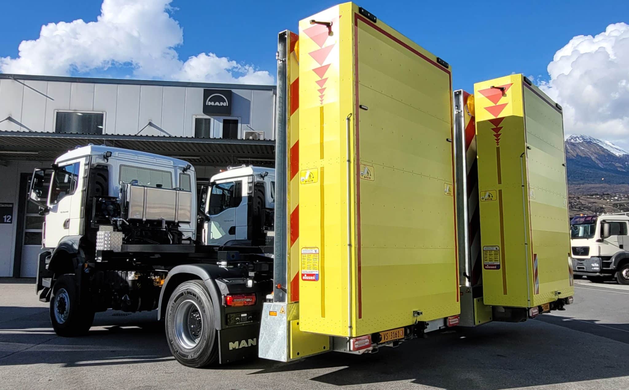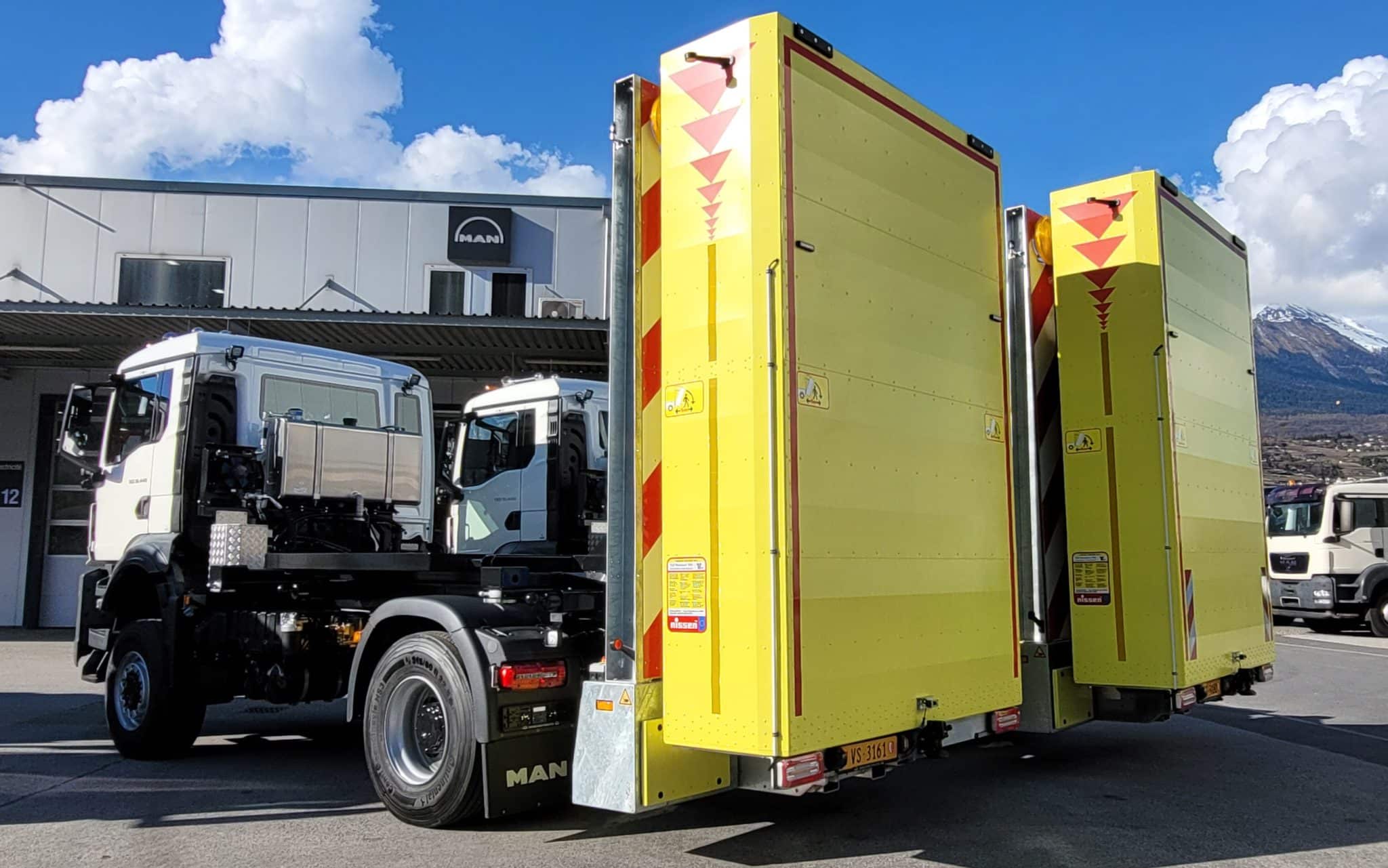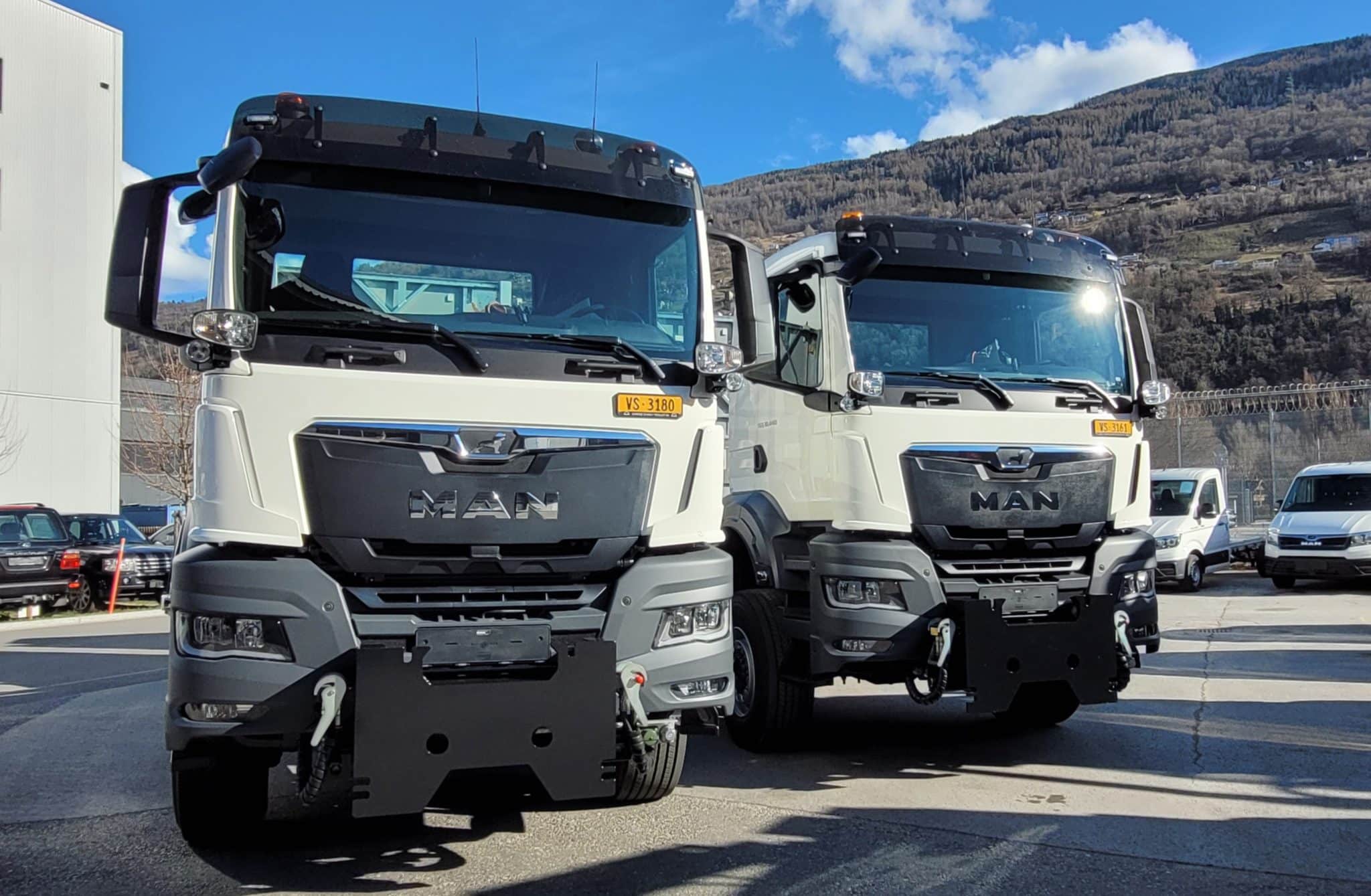 Aperçu de nos véhicules livrés : utilitaires, camions et montages de grues Palfinger